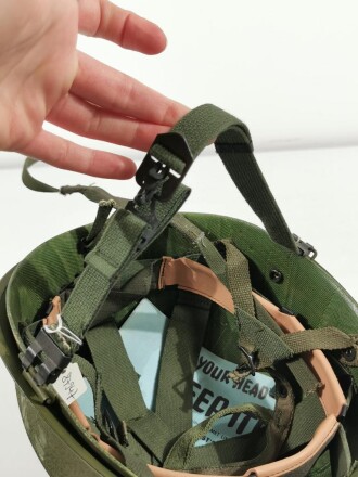 U.S. most likely 1980´s para helmet . Liner in vgc, Instruction booklet, helmet paint show some scratches