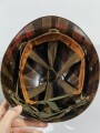 U.S.after WWII M1 steel helmet. Back seam shell, liner maybe WWII with replaced swaet and neck band.