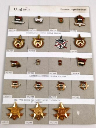 Ungarn, Sammlung von 18 Abzeichen zum Thema "Kommunistische Jugendverbände" alle auf Karton aufgebracht
