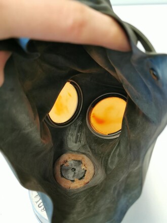 Volksgasmaske 37 in relativ schwerer Bereitschaftsbüchse aus lackiertem Zinkblech