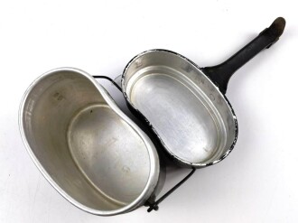 Waffen SS Verfügungstruppe, Kochgeschirr markiert RZM FA 1/36. Zusammengehörig, schwarzer Originallack.
