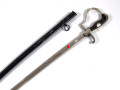 Wehrmacht Heer Einheitssäbel. Vernickelte, doppelt geätzte Stahlklinge mit Hoheitsadler, vernickeltes Gefäß , Hersteller Hörster Solingen, Scheide beilackiert
