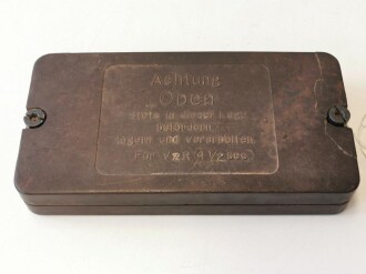 Wehrmacht, Verpackung für Verzögerungs Röhrchen 4 1/2 Sekunden aus brauner Preßmasse, datiert 1942, Maße 18 ,5 x 9,5 x 3cm
