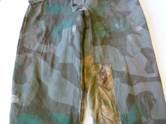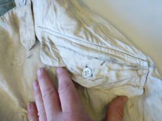 Winterwendehose Splittertarn-weiß, getragenes Stück mit diversen Reparaturstellen. Hosenträger Original