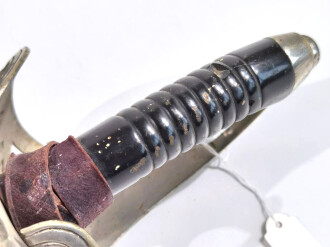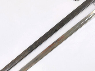 Württemberg, Kavallerie Degen KD89. Beidseitige Klingenätzung, anhängend wohl original zugehöriger Faustriemen, Scheide Originallack