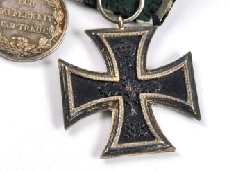 Württemberg, Ordenspange Eisernes Kreuz 2.Klasse 1914, Silberne Militärverdienstmedaille König Wilhelm II. 1892 - 1918, Ehrenkreuz für Frontkämpfer