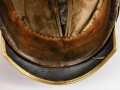 Württemberg, Pickelhaube für einen Reserveoffizier im Train Bataillon 13. Hinterschirm wird nur durch die Schiene gehalten, Glocke mit verlaufenem Schellack, sonst gut